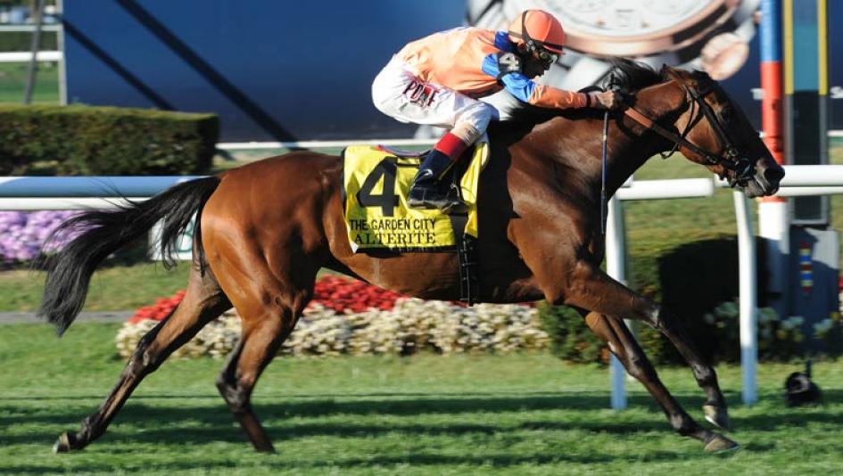 Alterite (above winning the Garden City Stakes in September 2013) has a chance to regain her best form in the Beverly D. Stakes on Saturday at Arlington Park. (Photo by Adam Coglianese/NYRA)