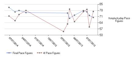 A serious racehorse in his 3-year-old year, Itsmyluckyday ran second in the 2013 Preakness Stakes before getting injured in June 2013. Over the course of the last three races, he has quickly rounded back into form, most recently posting an 81.5 Final Pace Figure.