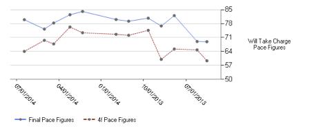 Looking at his Pace Figures, his most recent final figure was 80, a bounce-back from the 75.3 on 5-to-2. Speaking of which, it was no surprise to see a 75.3 at that point, given Will Take Charge had six final figures north of 78 in a row. Using the basic view on Predicteform, you can see his four-furlong figure has never been bigger than his final figure, a true sign of a classic distance runner.