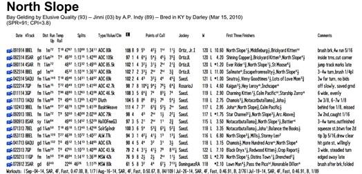 While that change alone can on occasion be telling, in the case of North Slope there was evidence indicating he could turn in an improved effort.