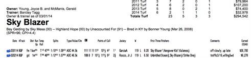 SKY BLAZER'S 2014 PAST PERFORMANCES