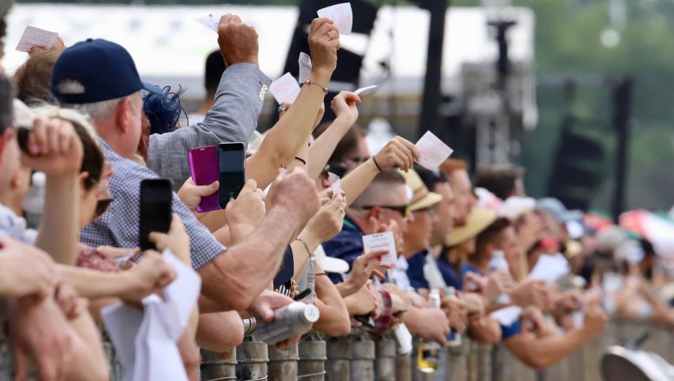 When you bet “across the board,” it’s the equivalent to placing separate bets on the same horse to win, place, and show. If they win, you receive the win, place, and show payoffs. If they come in second, you get just the place and show prices, and if they finish third, you only cash your show bet. The minimum bet is $3, the equivalent of a $1 ticket to win, place, and show.