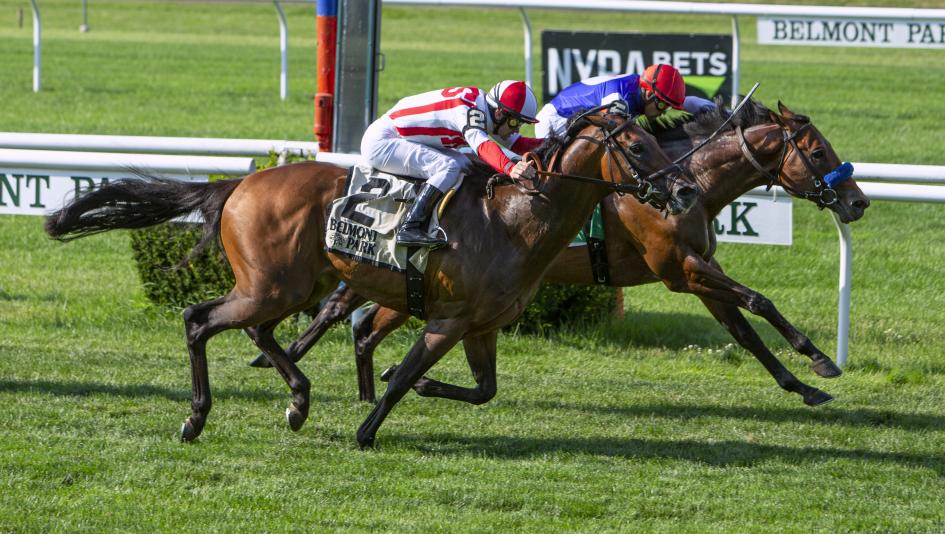 A close one-two finish at Belmont Park in spring 2021. (Eclipse Sportswire)