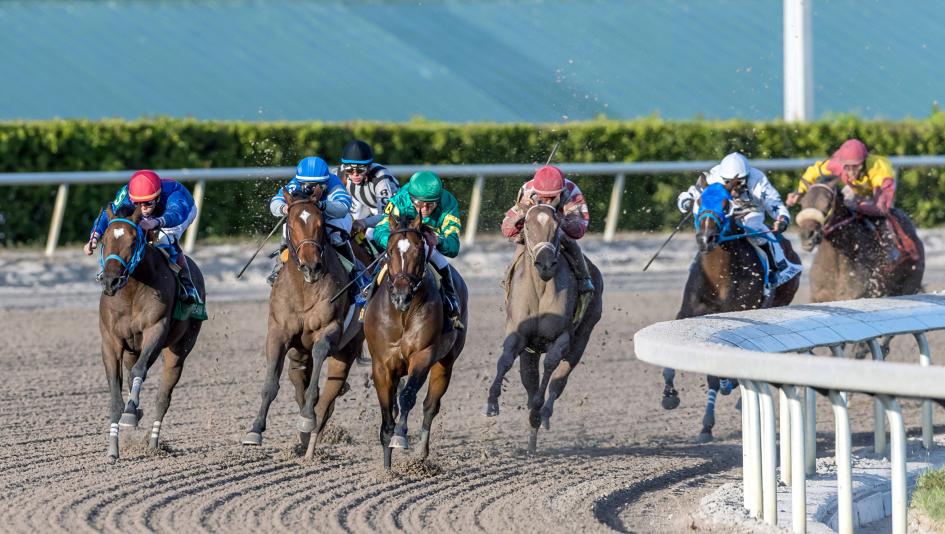 Horses race into the stretch coming off the far turn at Gulfstream Park. (Eclipse Sportswire)