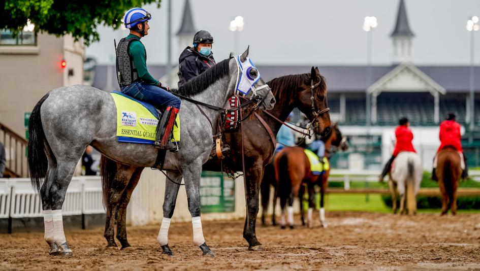 Essential Quality prepares for a morning gallop on April 29 at Churchill Downs, two days ahead of his planned start in the Kentucky Derby. (Eclipse Sportswire)