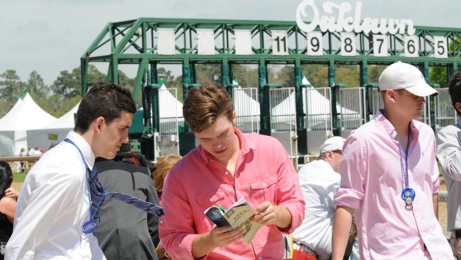 Fans study the program for potential winners at Oaklawn Park. (Eclipse Sportswire)