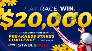 The Preakness Stakes might be known as the second leg of the Triple Crown but it’s your first best chance to score a big payday on StableDuel. A first-of-its kind platform for daily live horse racing contests, StableDuel will offer its biggest prize pool ever this Saturday: The $20,000 Preakness Stakes Challenge.