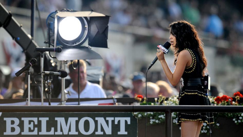 Jazmin Villegas, above, performed "Empire State of Mind" before the 2010 Belmont Stakes. (Photo by Eclipse Sportswire)