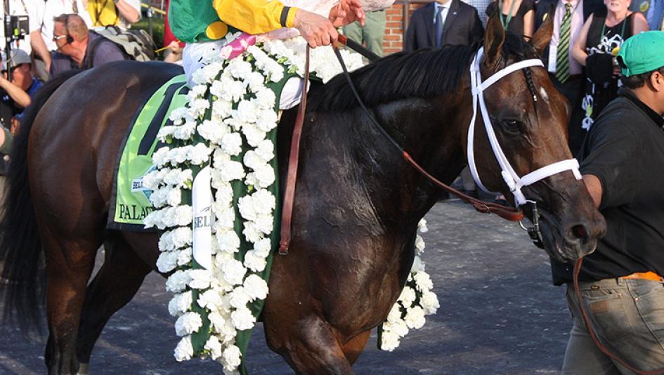 Palace Malice wears the carnations after his win in the 2013 Belmont Stakes. (Photos by Eclipse Sportswire)