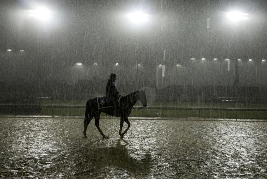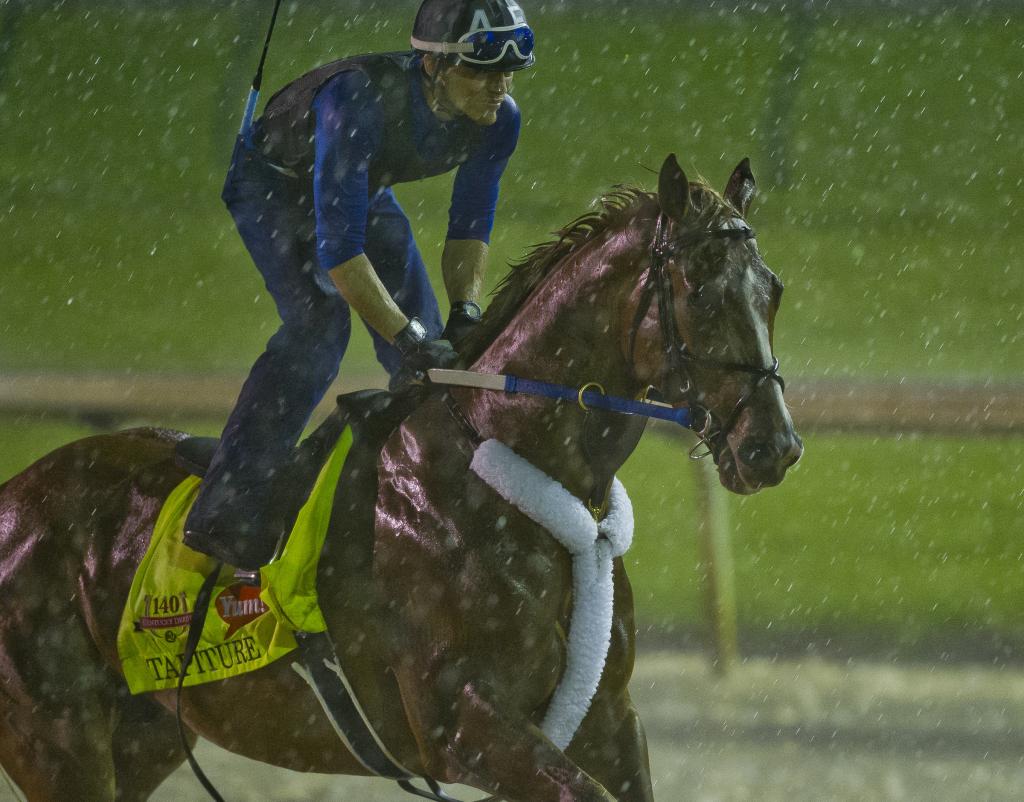 Monday morning brought lots of rain to Churchill Downs as the Kentucky Derby field entered their final five days of preparations before running for the roses. Only two contenders breezed today with Tapiture hitting the track at 6:15 a.m. right before a rainstorm hit. As the colt started his work, a crack of lightning was heard but he seemed unfazed with the weather, going four furlongs in 50 seconds flat.