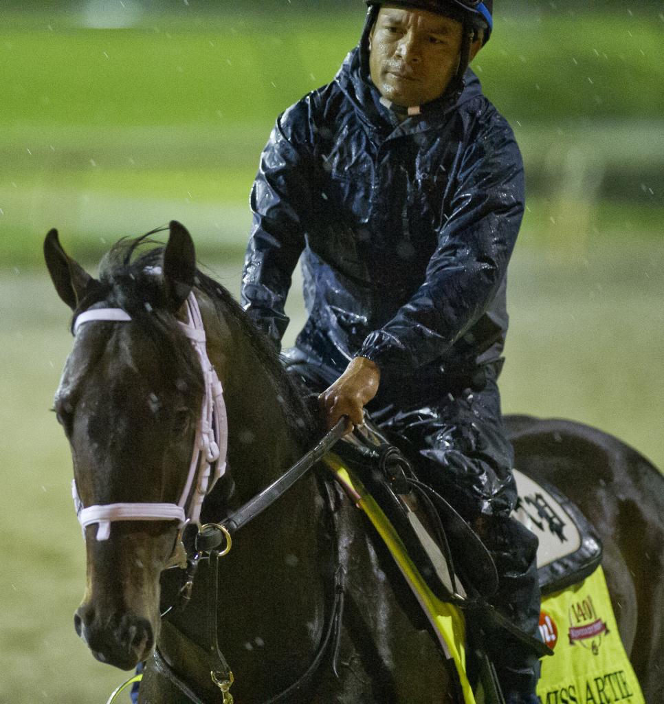 Trainer Bob Baffert had to call an audible and change the scheduled time of the colt’s work after the weather hit but he was pleased with how the colt handled the track.