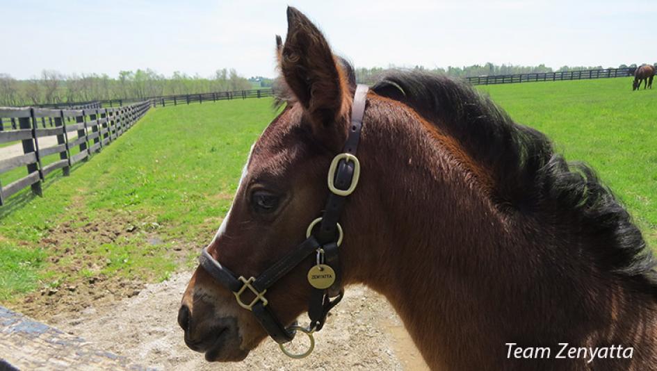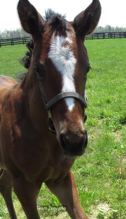 Zenyatta's 2014 War Front filly at Lane's End Farm. (All photos by Julie June Stewart for Team Zenyatta)