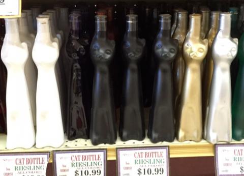 Searching four different wine retailersʼ shelves in the New Orleans area I found the following on labels: goats, cats (even cat shaped bottles), rabbits, wild dogs, an oryx, kangaroos, sharks, lots of bulls, chickens, fish (and a bottle shaped like a fish), toads, ravens, hawks, frogs, sheep, penguins, a badger, stags (standing still and leaping), wild boar and also monkeys (including one making a phone call and wearing a suit). I found fantastical creatures: a phoenix, a bear with wings, a bear breathing fire, a pegasus, a griffin and a unicorn.