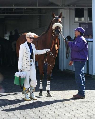 I remember Chris walking Amazombie over from the barns at Churchill Downs. She was impeccably dressed in an all-white suit. She also wore the most memorable yellow print barn boots. They were probably the most photographed footwear of the 2011 Breeders’ Cup!
