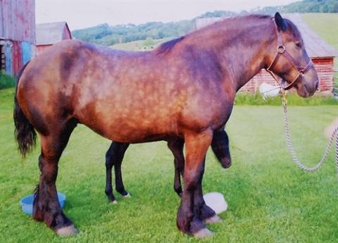 In 2010, she mentioned to a friend that she wanted a large appaloosa. They looked on the internet and she spied a day old baby Appaloosa and immediately bought him. (For Harley’s fans, his birthday is May 31, 2010). After all, she is a life-long horse woman and she knew exactly what she was looking for. The foal was a dark Appaloosa with large liquid eyes and a white blanket covered with dark spots. Officially named Daisy’s Chief Dane, she calls him Harley. Harley is a registered American Sugarbush Draft horse which is a new horse breed developed in the United States.