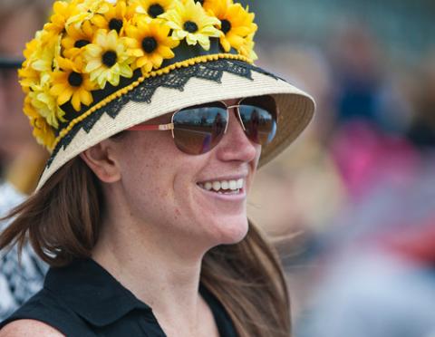 The second leg of the Triple Crown, the Preakness Stakes, is unique when it comes to style. The race held at Pimlico Race Course in Baltimore is also referred to as the run for the Black-Eyed Susans, the state flower of Maryland. Yellow and black are also in the state flag of Maryland, which is reflected in all of the Preakness's overall design and decor. You'll see lots of these colors throughout the clubhouse of Pimlico, although inside the infield, track goers tend to be much more casual as they watch the races during the two-day infield music festival. Many trade in their dressier attire and take to the party scene that Preakness is known for and take a more relaxed feel to this race.