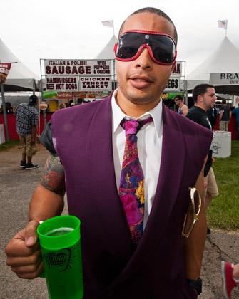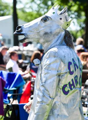 Keep it classy and bring out that Big Apple charm for the run for carnations with a nice patterned dress and hat or black blazer and dress pant. Looking to go off the beaten path in terms of styling for Belmont? Try dressing for your favorite horse or potential Triple Crown winner. Just take a look at the Chromie below who went the extra length to support his favorite horse last year!