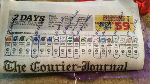 As she grabs a hunk of his mane, she pulls a band out of her mouth and says “Everybody loves this. The pageantry of the Derby. Even the men love seeing the ponies decorated.” The first time she decorated ponies was her own horse when she was ponying at Santa Anita and Hollywood Park. She used to use flowers but that takes days to prepare. It’s much simpler to use the ribbons as she can prepare them in one night.