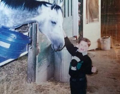 Tyler Cerin is an equine therapist. Only 28 years old, he has spent his entire life around horses. He grew up in Arcadia, Calif., and is the son of trainer Vladimir Cerin. One of his first memories of horses is hanging around the barn on his dad’s shoulders. He is blessed because he has never had to seek out his purpose in life. He has always known that his life would be with horses. When he was growing up, he would go to the barns in the morning before school and often got in trouble for leaving school early to go to the races. Looking at a photo of him as a kid in his dad’s barn, it is easy to see that horses are his destiny.