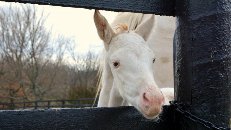 White Thoroughbreds are an integral part of the historic land-grant farm’s tradition. The first white Thoroughbred ever registered, White Beauty, was born on the farm in 1963. Two generations later a white granddaughter of White Beauty was born in 1981, and white Thoroughbreds have continued uninterrupted for five generations since.