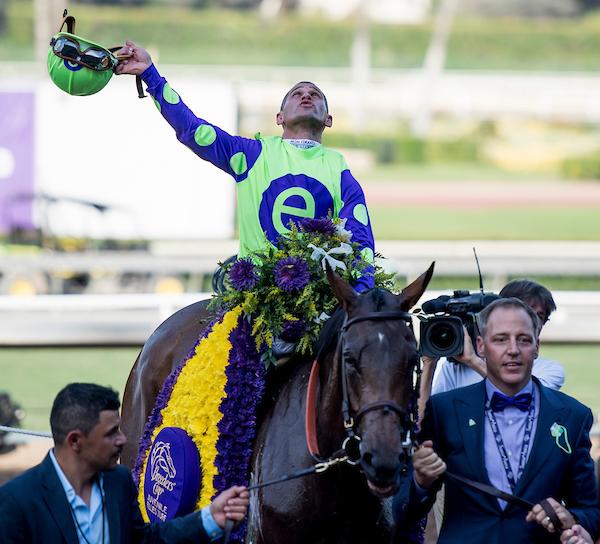 “We went from not winning a maiden special weight race to the Breeders’ Cup,” Edwards said. “An unbelievable experience. Our son, Riley, and youngest daughter, Delaney, made the trip. … My wife and I were in shock. We were thankful to have Mary Ryan [Mike Ryan’s wife] and our owner’s escort bring us down to the winner’s circle. Someone handed me a trophy and said, ‘turn around.’ I never saw that many cameras before. At this point, the adrenaline spike is at its peak, and they started to interview me. It was all a blur.”