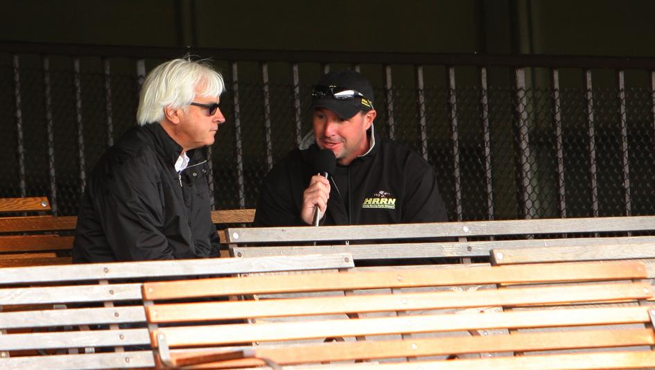 Mike Penna interviews Bob Baffert before American Pharoah’s Triple Crown bid in 2015. (Eclipse Sportswire)