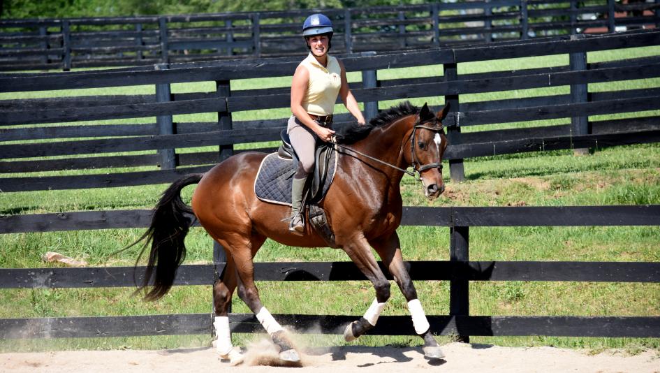 “Mak has definitely gotten more forward in the four years I have owned him - but in a good way,” she said. “He will always be more of a kick ride, but he has actually improved his gallop and his forward motion since he retired from racing. He only ran three times, and retired for being too slow, so this isn't surprising. But now he is the perfect, happy medium of having a Thoroughbred’s stride without the heat of pulling. He is a LOT of fun to run around cross country because of this.”