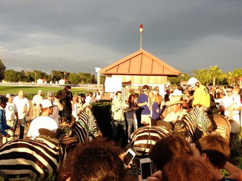 ZEBRAS PREPARING TO RACE AT FAIR GROUNDS