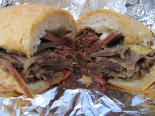 New Orleans invented the poboy (inventaron el poboy) y las fuertes, locales raíces irlandesas ayudaron a hacer de éste en particular un clásico. No, no viene acompañado (lechuga, tomate, mayo y algunos pickles) pero la sazón real, mediano grosor, de las tajadas del bife macerado dan un toque especial al sandwich y tú puedes añadirle tu propia mayo, mostaza (Gulden’s Spicy Brown para mí) y salsa picante si te gusta. Es una extravaganza gastronómica poco lujosa y te saciará y hará feliz a tu boca. Está disponible en el primer piso sobre la recta final.