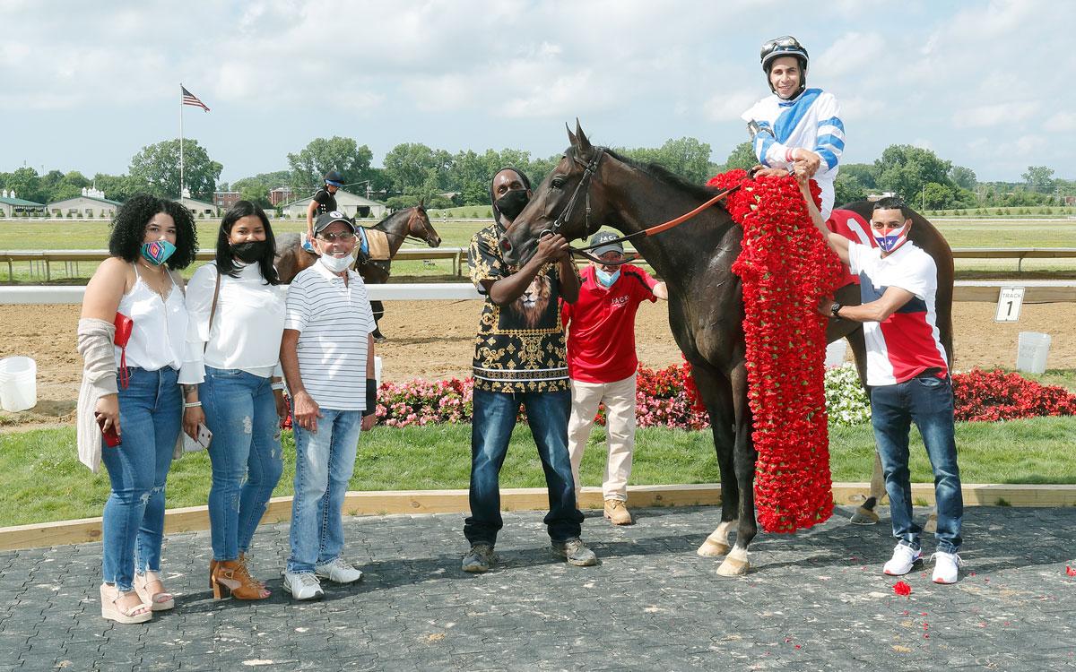 Dean Martini, ridden by Ricardo Mejias, won the $500,000 Ohio Derby June 27 at Thistledown. He is the lone racehorse in the stable of owners Raise the BAR Racing. (JJ Zamaiko Photography)