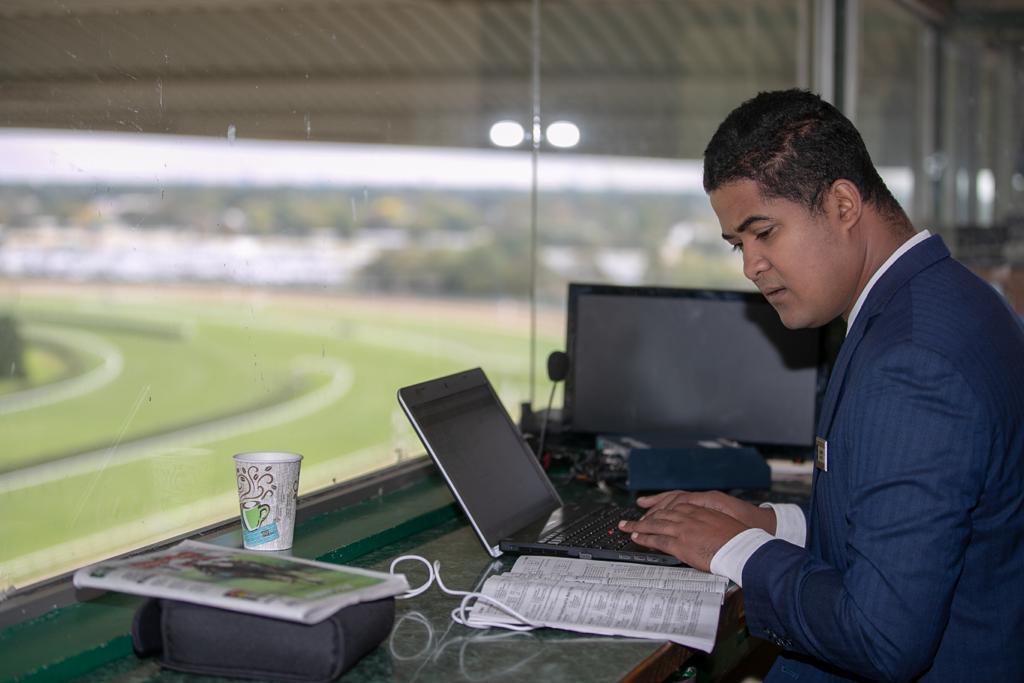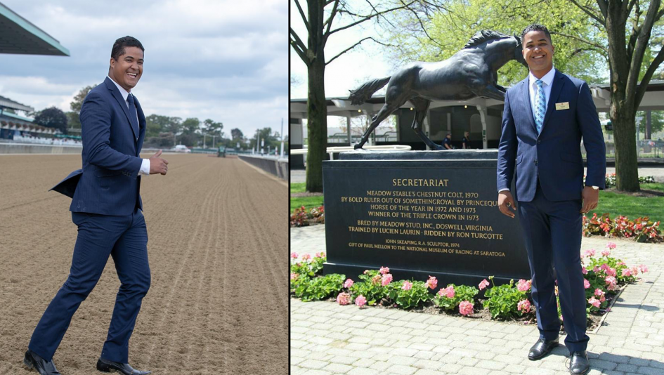 There’s no missing Darwin Vizcaya. Whether it’s his giant ear-to-ear grin — which he’s seemingly always flashing at the track — or his physically imposing size (he’s 6 feet 4 inches tall), it’s hard not to notice the New York-based race caller and analyst originally from Aragua, Venezuela.