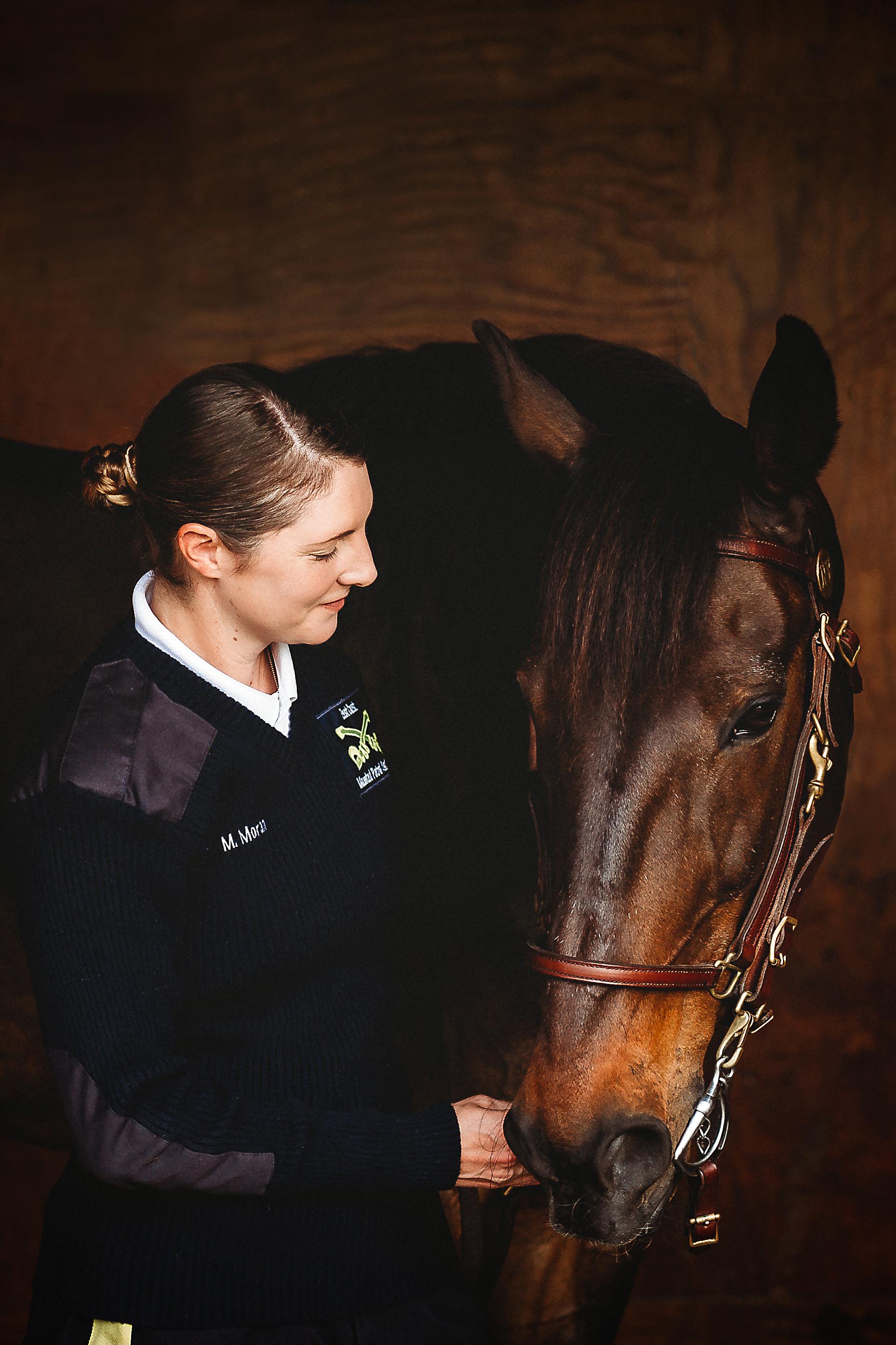 On Jan. 8, he stepped off the trailer at Iron Horse Sanctuary for his quarantine. I spent every day with “Gunner” and we bonded as I showed him that life was different now and he would be treated kindly with love – and through this time, he transformed into a love bug. After a few months, he stopped flinching when I went to pet him, and the light in his eyes and coat sparkled. I wanted him to “just be a horse” and heal for a few months after his rescue. My regular police horse was having soundness issues and so Gunner started preparations to fill in as the understudy. He had never been ridden before; however, he was a quick study and went to mounted police school with only six rides under his belt. He passed the challenging few weeks at REMOUNT school and went right to work as a police horse thereafter.
