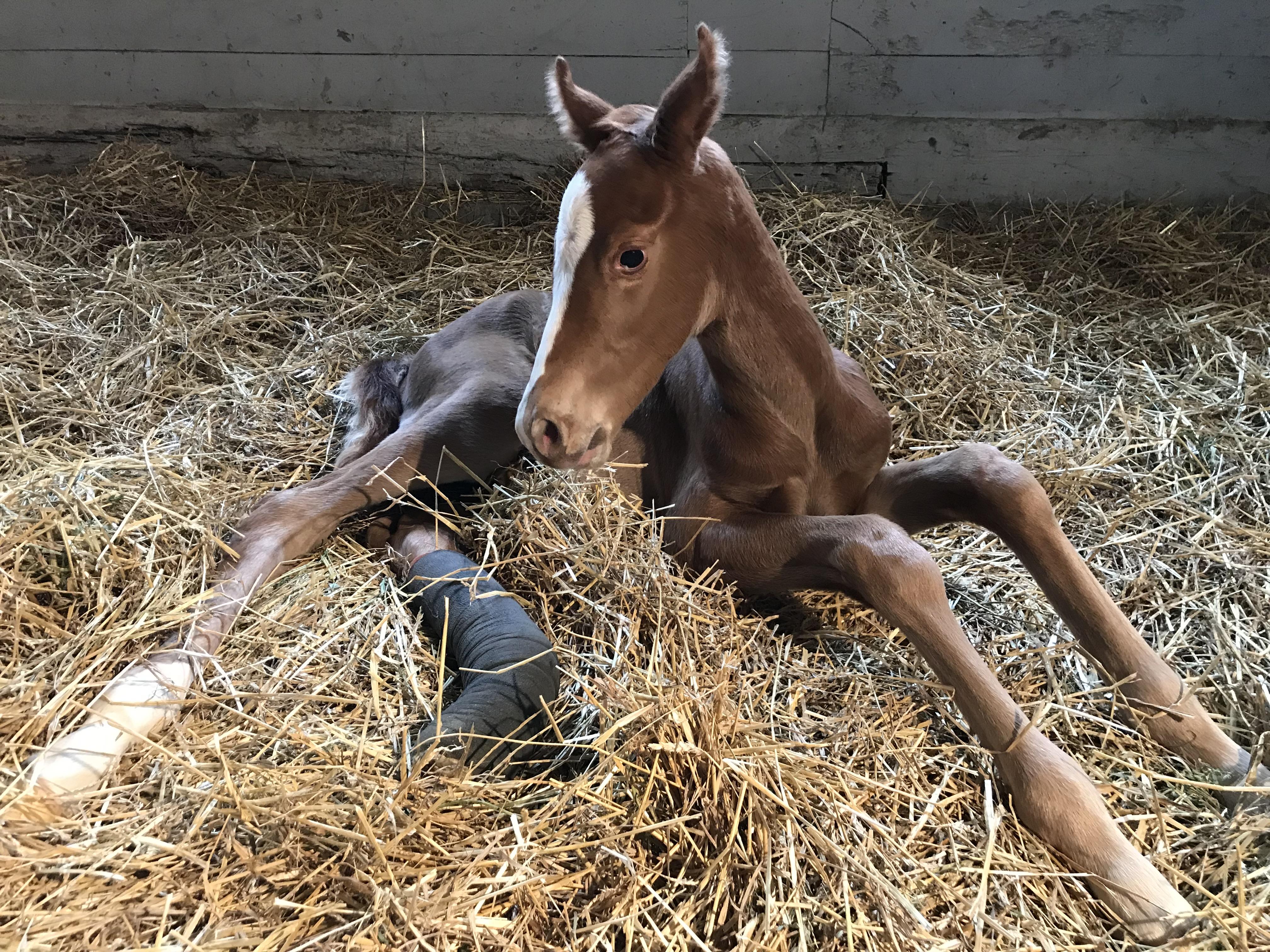 She is naturally proud of Dakota Gold. “From day one, we knew he was nice. He has always been beautiful. He came out looking like a rocket ship. You can see the hind end on him. He was absolutely the boss in the field at a very young age. His mama is an alpha mare. So, he followed suit. He’s also very smart. He took everything in stride as we started sales-prepping him. We sold him at the Saratoga Fall Sale as a weanling. That’s a stressful environment especially for a little baby. He was so popular. He was shown all the time; often with a big crowd around him. He completely ate it up! He got better during the sale. He has a great presence about him. He really seemed to feed off the attention. I’m not at all surprised that he has turned out to be a star already. He has a beautiful walk, and he travels in an athletic way. It’s not a surprise that he can run given his presence, intelligence, and movement.”