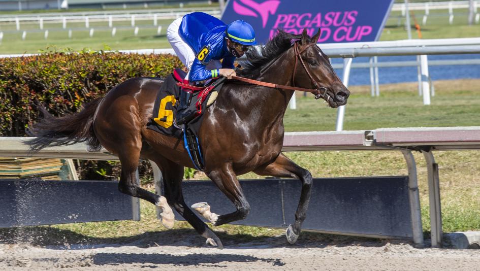 Prevalence turned heads with an eye-opening debut win, above, Jan. 23 at Gulfstream Park. (Eclipse Sportswire)