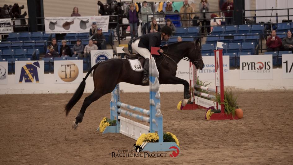 In the preliminary round of competition at the Thoroughbred Makeover, Bennings and Prince of New York dominated in both Show Jumpers and Show Hunters, finishing in the top three out of more than 70 competitors in each discipline. When Bennings called on the 6-year-old stallion to again bring the heat in the finale, Prince of New York answered in spades, proving victorious in Show Jumpers, earning reserve champion in Show Hunters, and being awarded by text-in popular vote the People’s Choice Award.