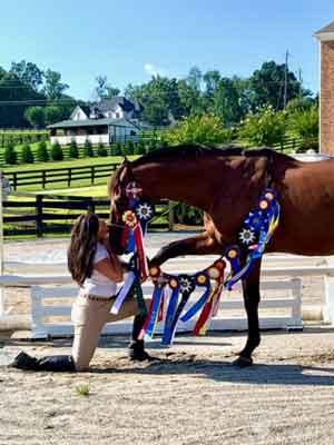 When I adopted Enduring Honor from Blue Bloods Thoroughbred Adoption, my only hope was to have a kind, loving equine companion to enjoy backyard rides and trails, family time with fellow pets and loved ones … and to make a positive impact through rescue. Never in my wildest dreams did I imagine that he would get me back into show jumping for the first time in 20 years and blossom into a champion. We are now leading our division on our local circuit, within just our first year together (even beating imported Warmbloods who cost several times his price). We are looking forward to taking our partnership to new heights taking on bigger challenges, bigger jumps, and bigger shows in the years to come. Because of our success together, I’ve now petitioned to make Thoroughbred Hunter a state recognized division with Georgia Hunter Jumper Association here in Georgia, hoping to create a space for many more Thoroughbreds to flourish and thrive in lives after the track. It’s all inspired by my wonderful boy who turned out to be so much more than I ever dreamed: a loving pet, a loyal friend, and a winning show horse. As I often say, I adopted a companion and wound up with a champion.— Joy Nakrin