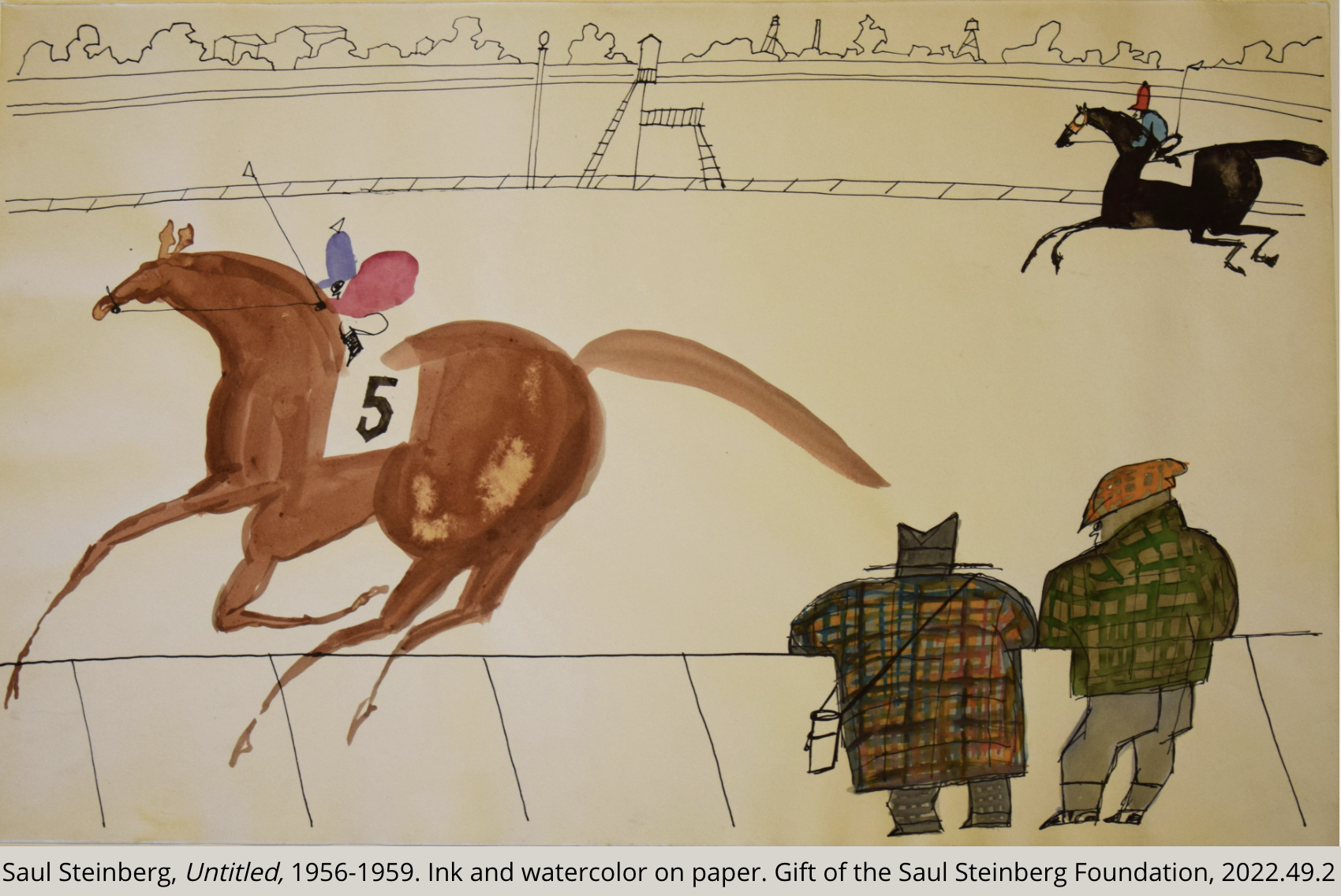 “We are excited to exhibit the artwork of Saul Steinberg in a different light and bring together those with an appreciation of art as well as Thoroughbred racing,” said museum curator Jessica Cloer.