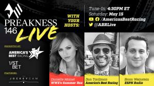 Hosts Dan Tordjman (ABR), Bram Weinstein (ESPN Radio), and Danielle Moinet (WWE's Summer Rae) take viewers right up to post time for the 1 3/16-mile classic race in an immersive second-screen Preakness Live! experience that allows fans and bettors to interact in real-time.
