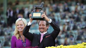 Janet and Jim Rome after winning the 2012 Breeders' Cup Turf Sprint with Mizdirection. (Photos courtesy Janet Rome)