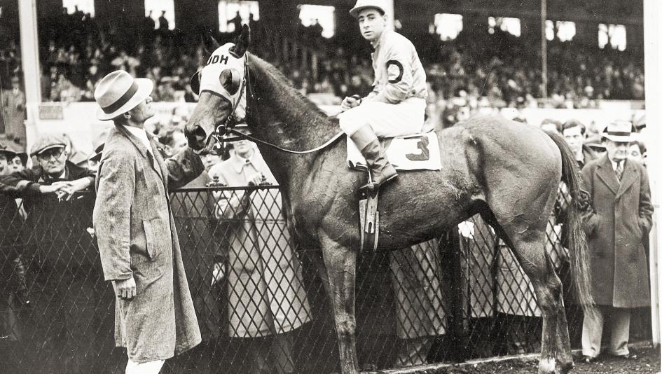 Count Fleet, pictured with jockey Johnny Longden, was an impressive 2-year-old who went on to capture the 1943 Triple Crown as a 3-year-old. (BloodHorse photo)