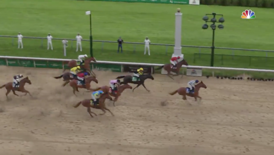 Secretariat, who stalked the pace for much of the race, proved best in the stretch, clearly in no need of his customary blinkers in the virtual world. Churchill Downs said a limited time frame for production didn’t allow the graphics to incorporate equipment such as blinkers.