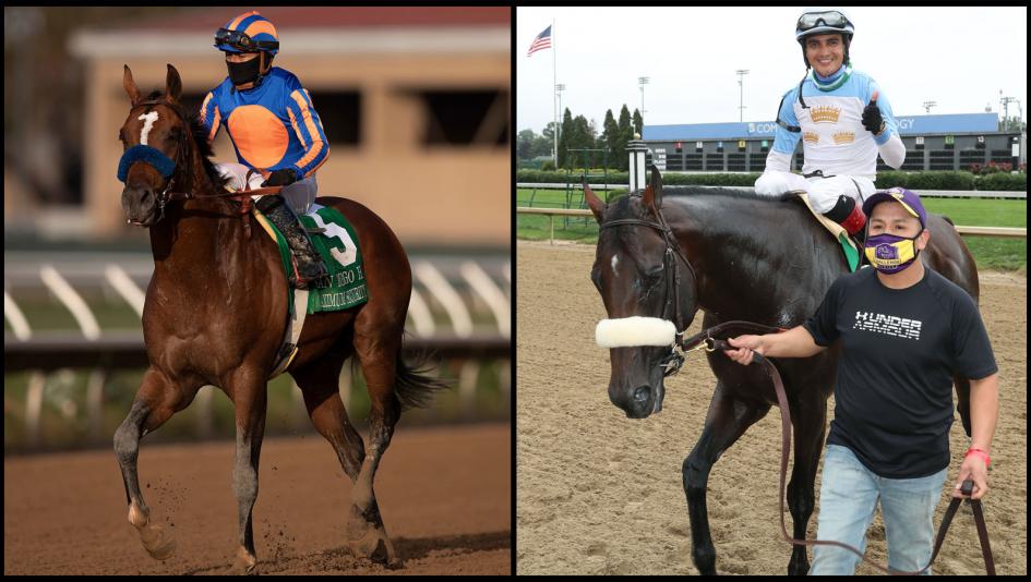 Maximum Security (left) and Tom’s d’Etat are tied at the top of the latest rankings for the Nov. 7 Breeders’ Cup Classic. (Eclipse Sportswire/Coady Photography)