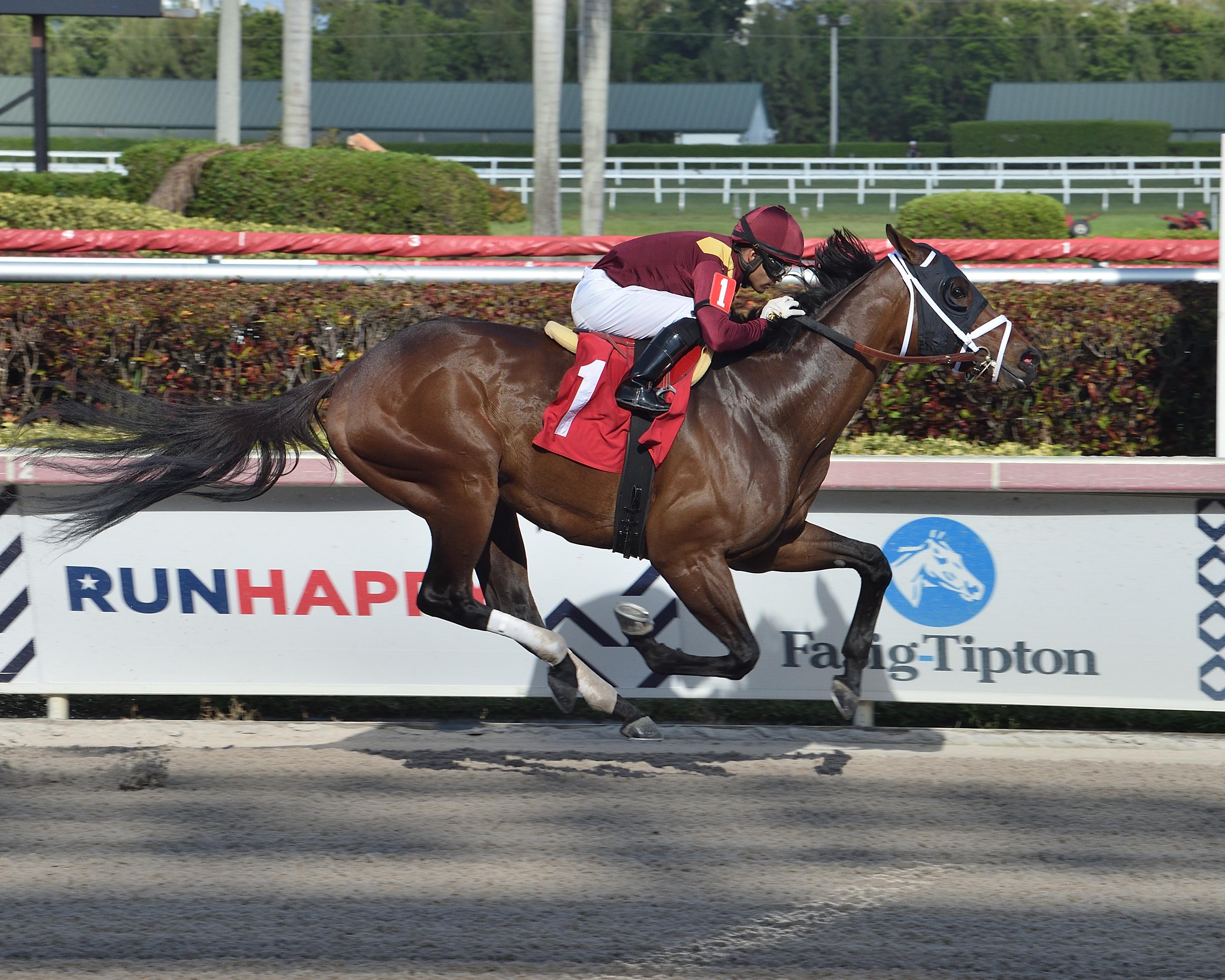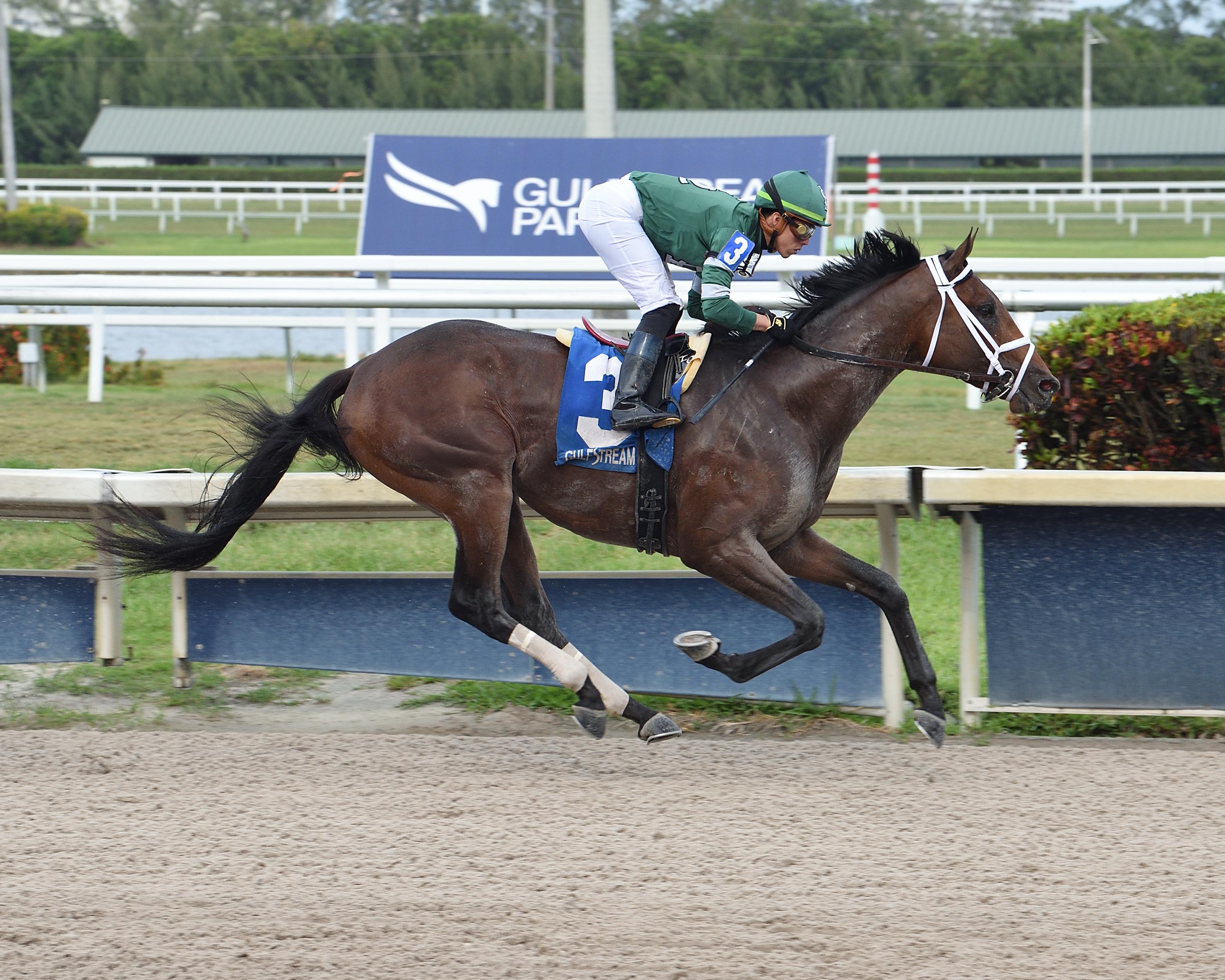 I was hoping to see Ete Indien, a horse who has been on the Derby Dozen most of the year, use a recent allowance race at Gulfstream Park to learn how to rate, but with blinkers added he wound up going head and head with the speedy Curlin Florida Derby runner-up Shivaree and tired in the final furlong to finish fourth, while Shivaree hung tough to finish third, beaten 1 ½ lengths by Sole Volante, and finishing 4 ¼ lengths ahead of Ete Indien. Shivaree has proven he is not a horse you want to tangle with early.