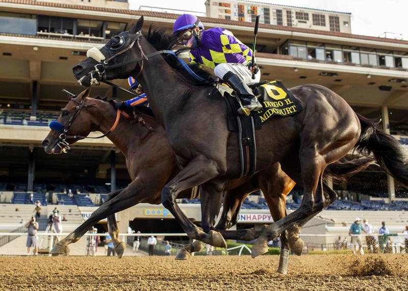 He had to work for every dollar of the $90,000 first-place check in the San Diego. Though he held the lead entering the first of two turns in the 1 1/16-mile race, that advantage was short-lived when Midcourt, under an aggressive ride from Victor Espinoza, urged him forward.
