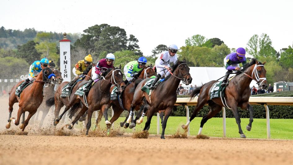 Horses race in the 2018 Arkansas Derby at Oaklawn Park. (Eclipse Sportswire)