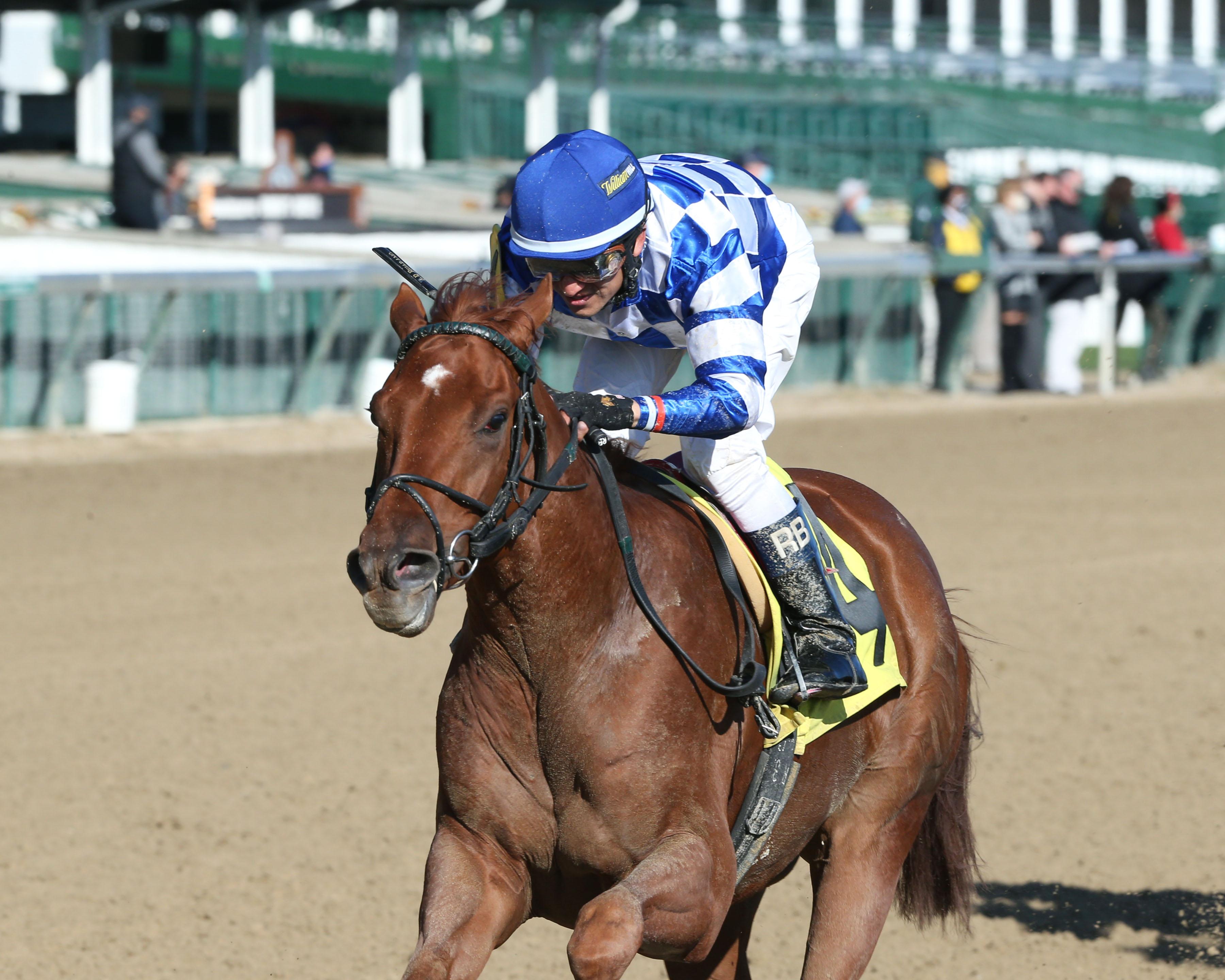 Notable achievements and interesting facts: Highly Motivated made his 3-year-old debut in the Gotham Stakes at Aqueduct on March 6 and overcame a less-than-ideal start to run on and grab third, a not-bad finish coming after a four-month layoff. Now, successful owner-trainer team Klaravich Stables and Chad Brown bring Highly Motivated back to the track where he secured his first stakes win in eye-catching fashion, as he romped in the 6 ½-furlong Nyquist Stakes at Keeneland on the Nov. 6 Breeders’ Cup undercard and, in fact, set a track record for that distance of 1:14.99 (horses set several track records at Keeneland last fall). This son of leading sire Into Mischief has put in two solid workouts since the Gotham and appears ready to take the next step in development. His pedigree suggests that Highly Motivated may do his best work in the future as a sprinter-miler, but his best Equibase Speed Figures stack up well against the top Blue Grass contenders and he could certainly hit the board with a career-best effort. Look for him to be positioned in the first flight of horses through the backstretch in a field that lacks early speed and to make a bid for the lead on the far turn. Chad Brown won the 2018 Blue Grass with subsequent Kentucky Derby runner-up Good Magic. Hall of Fame rider Castellano won this race in 2019 aboard Vekoma.
