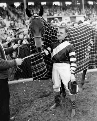 As a 2-year-old in 1936, War Admiral was nothing special, but the following season, he rose to stardom and would prove to be unbeatable. After wins in an allowance race and the Chesapeake Stakes, Kurtsinger guided War Admiral to an easy win in the Kentucky Derby, a narrow triumph in the Preakness, and a three-length romp in the Belmont Stakes despite a stumble at the start. War Admiral and Kurtsinger would pair up for three more wins later that year, and after receiving Horse of the Year honors for 1937, War Admiral came back as good as ever in 1938, winning major stakes races like the Widener and Saratoga Handicaps with Kurtsinger in the saddle.