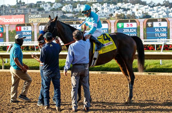 Pinehurst couldn’t have been much sharper in the Del Mar Futurity. After racing to the lead through quick quarter-mile fractions of :22.09 and :44.77, Pinehurst kicked away with authority in the stretch, winning by 4 1/2 lengths while crossing the finish line in 1:23.55 for seven-eighths of a mile.