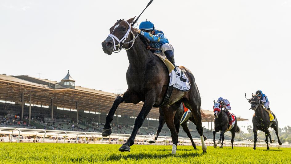 Smooth Like Strait, with Umberto Rispoli riding, coasted to a 1 ½-length win in the Shoemaker Mile Stakes on May 31 at Santa Anita Park. (Eclipse Sportswire)