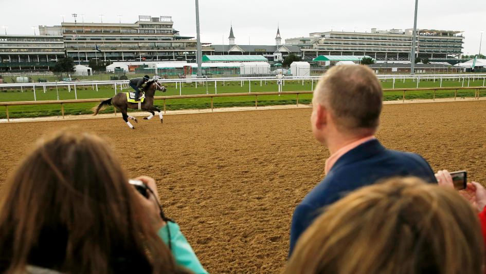 Fans watch Kentucky Derby contender Charge It breeze at Churchill Downs on May 4. (Eclipse Sportswire)